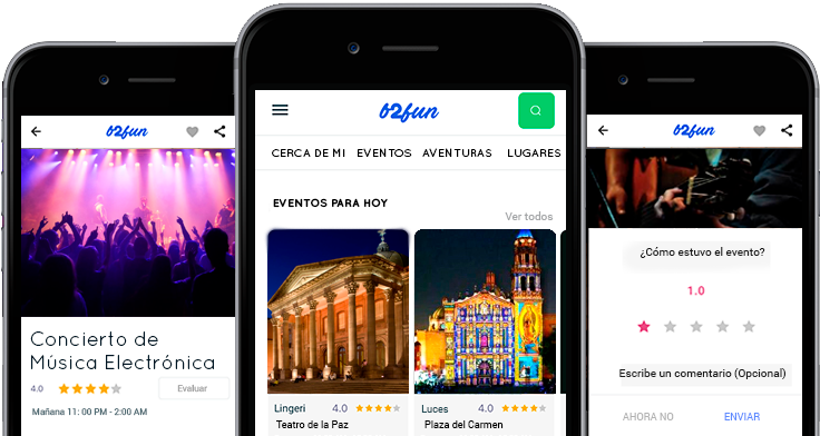 Somos una Plataforma Gratuita, si somos ¡GRATIS!. En B2Fun podrás publicar eventos, lugares de diversión y experiencias de todo tipo. Nuestros numerosos colaboradores nos ofrecen una comunidad de promoción cultural y esparcimiento donde nuestro principal objetivo es la diversión. Siente, difruta y vive las experiencias a tu alrededor.